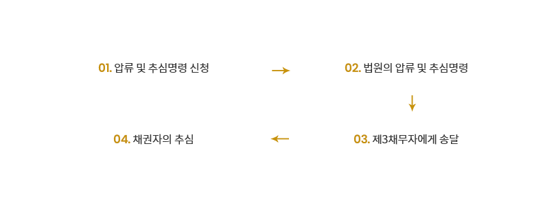 소송을 통하여 승소판결을 받아 집행권원을 가지고 있는 채권자는 채무자가 제3채무자에게 금전채권을 가지고 있는 경우, 채무자의 제3채무자에 대한 채권에 대하여 법원에 압류명령신청을 함으로써 채무자의 제3채무자에 대하여 금전의 급여을 구할 수 있는 청구권에 대하여 압류를 할 수 있고 이후 추심명령이나 전부명령을 받아서 자기채권의 변제에 충당할 수 있습니다.